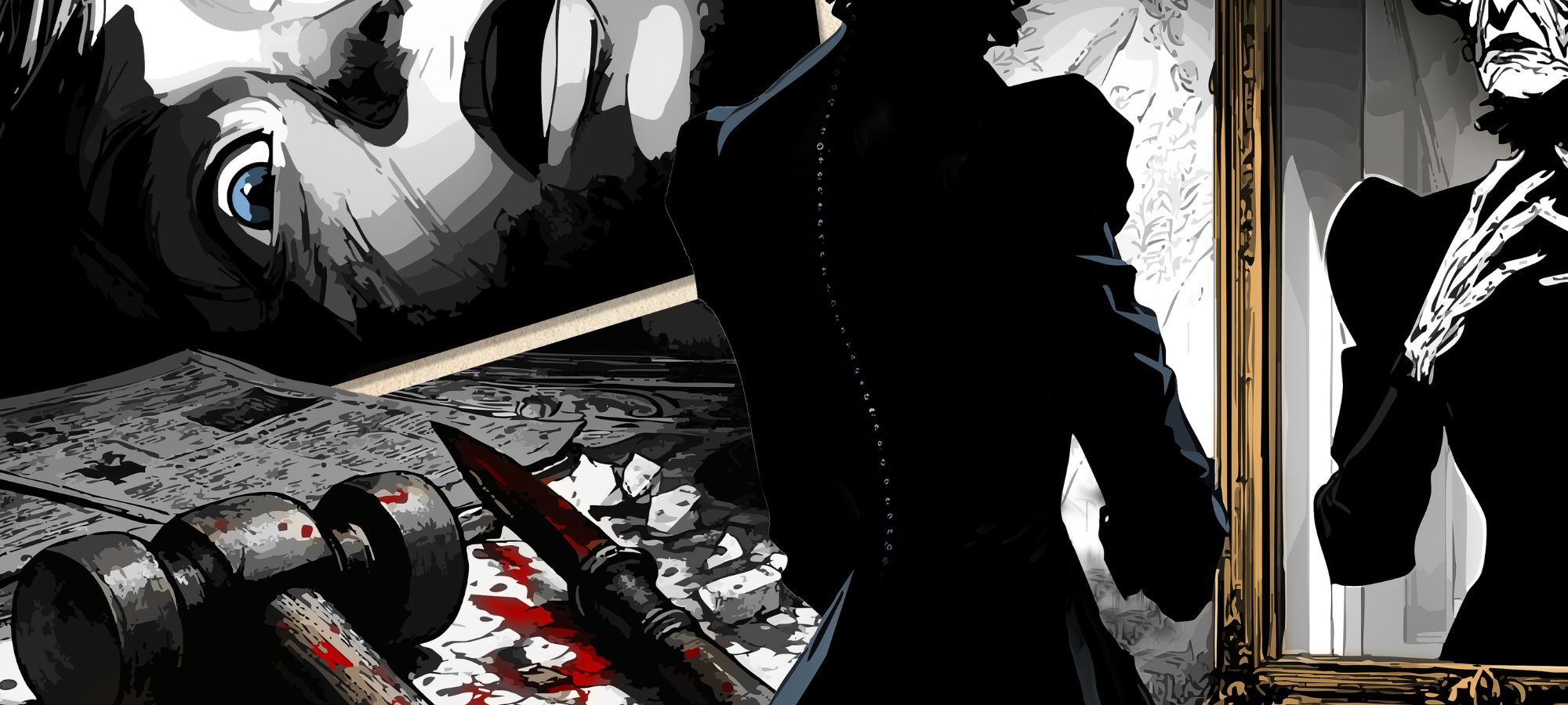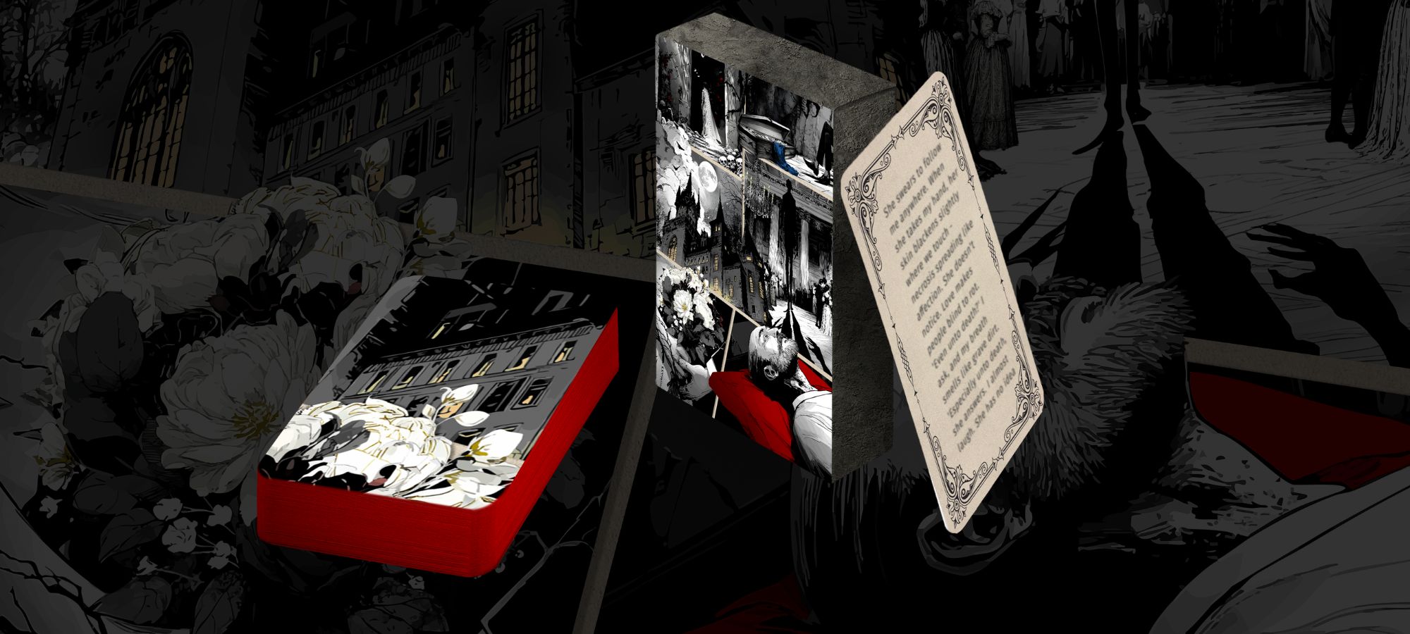 • Original Artwork: Stark black and white with blood-red accents. Graphic novel meets Victorian horror.